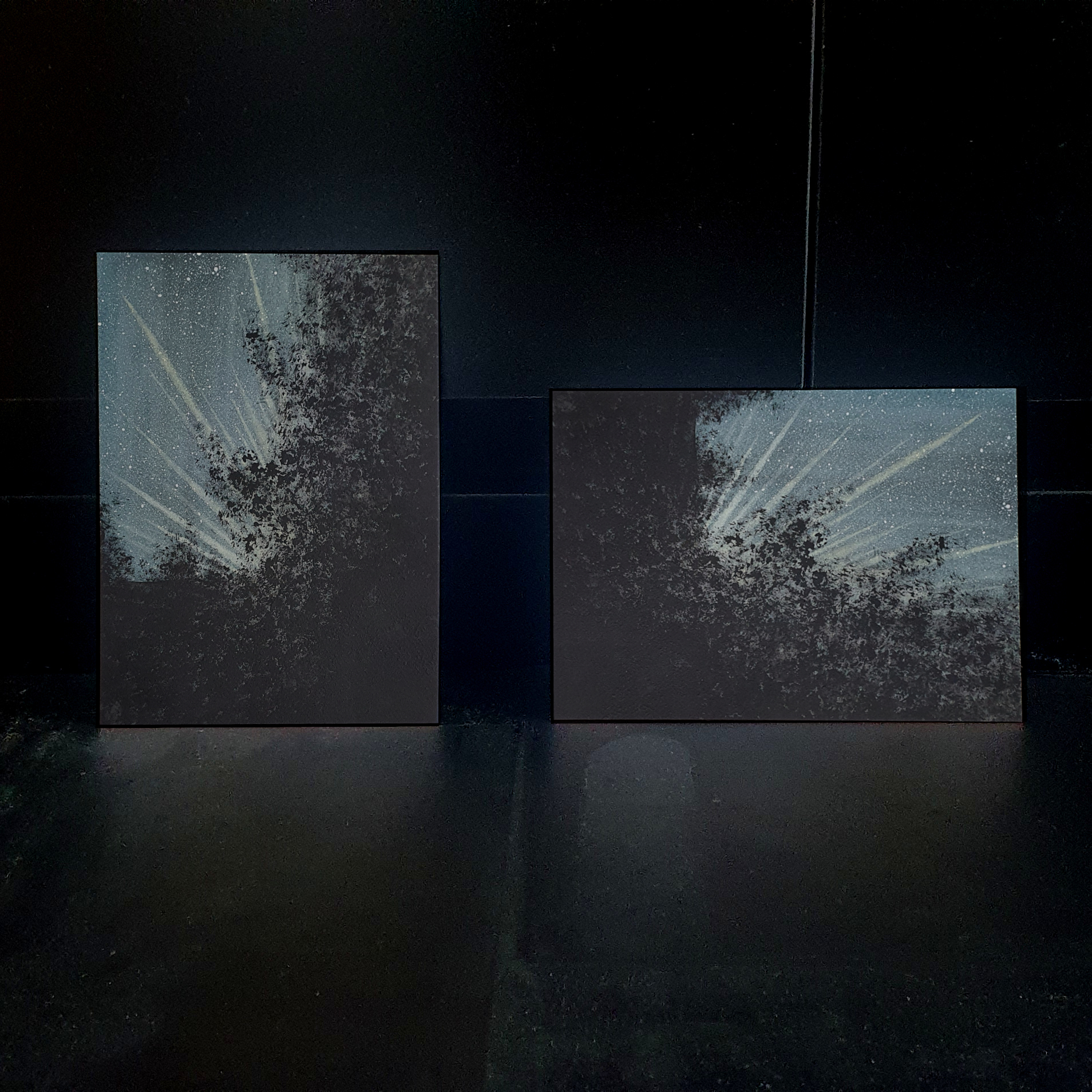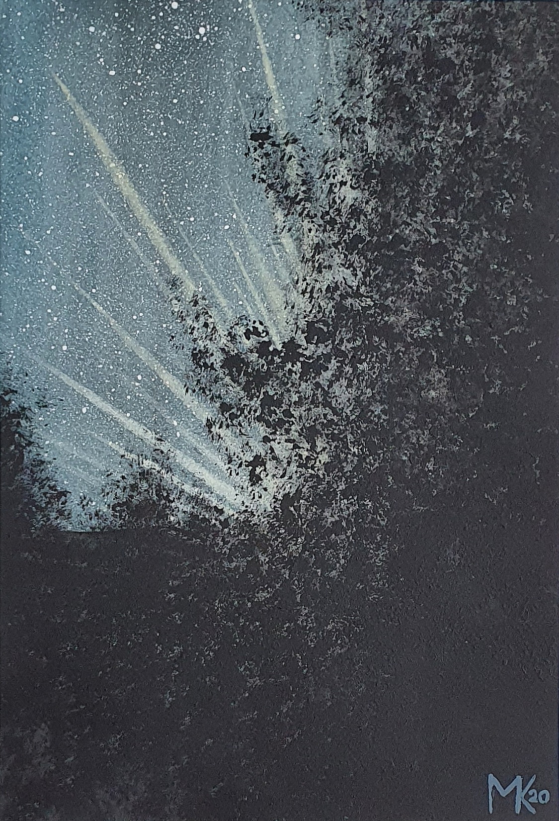 Das Original wurde in Aquarellfarben erstellt. Inspiration dafür war eine Nachtfahrt durch den nebligen Frankenwald.